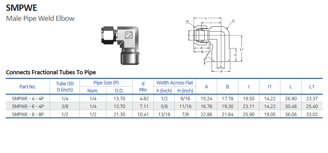 - Tube OD D: 1/4″ – 1/2″